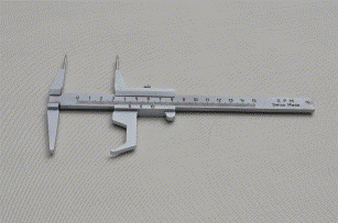 Compás de corredera con vernier (1/10 mm. ) con puntas. Longitud de escala, 0-150 mm. Compás especial para mediciones pequeñas. |