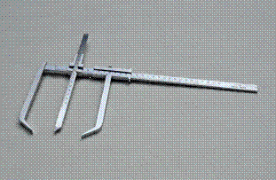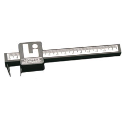 Compás de corredera ( tipo Poech) para determinar las medidas faciales absolutas y proyectadas. Longitud de escala, 0-250 / 0 - 140 mm.. |