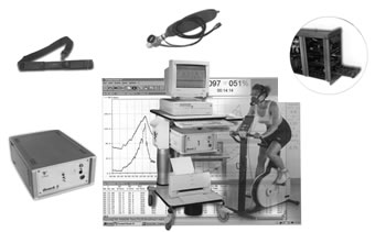 Permite monitorizar: - Consumo de O2 - Producción de CO2 - Respiración - Tasa Cardiaca - Función Cardiaca - Saturación O2 - Calorimetría Indirecta - Espirometría. Es un equipo con muchas aplicaciones en los siguientes campos: Medicina del Deporte, Nutrición, Rehabilitación, Cardiología, Pneumología. El equipo esta totalmente automatizado y computerizado. Existen modelos para instalación fija en laboratorios y modelos con transmisión telemétrica de datos para ser usados en estudios de campo. |