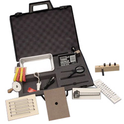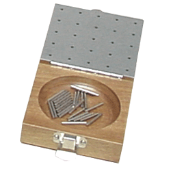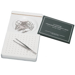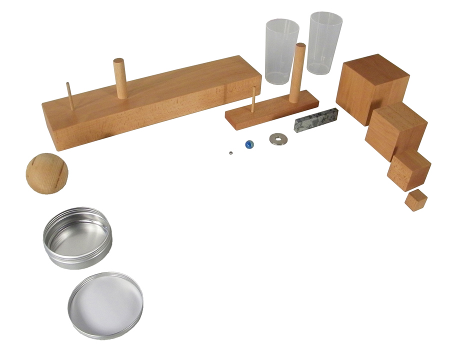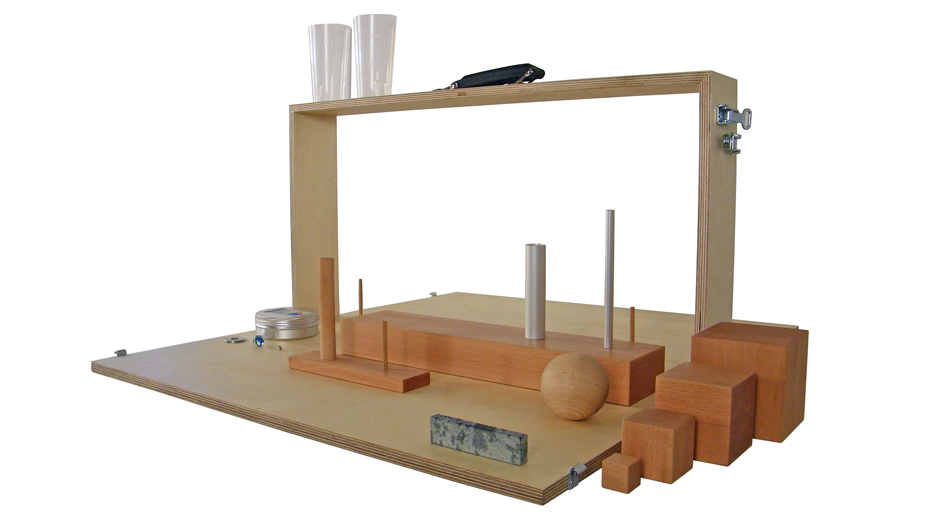 Utilizado para medir la habilidad para discriminación de pequeñas diferencias de peso. Consiste en dos series de 12 pesos cada una. La serie ligera, con pesos comprendidos entre 75 y 125 gramos. La serie pesada, tiene los pesos comprendidos entre 175 y 225 gramos en incrementos de 5 gramos y con dos pesos iguales de 200 gramos. Todos los pesos tienen formas idénticas y van marcados en la parte inferior. |