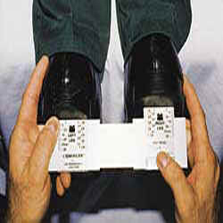 CATALOGO: Fisiología Humana y Evaluación Física Indice: VARIOS SP-7504 PEDALERT Es una alarma ideal para controlar el peso sobre una extremidad inferior. Es especialmente útil en ocasiones en las que exista una limitación de soporte de peso sobre la extremidad. Los umbrales se fijan con facilidad y van desde el simple toque con el dedo pulgar a unos 50 kgs. El sensor de membrana colocado en el zapato monitoriza constantemente el peso colocado sobre él. Las señales auditivas de alarma tienen un tono ajustable que sonará al llegar el peso al límite establecido. Incluye: Sistema de sensores, módulo electrónico, cable de conexión, batería de 9 V. e instrucciones. |
