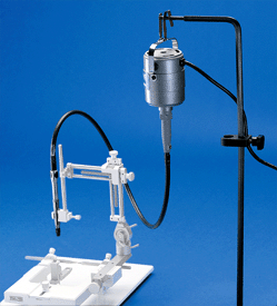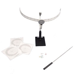 Campo de aplicación: Evaluación de los mapas de color de la zona sensitiva de la retina. Descripción: Diseñado para el trabajo de laboratorio antropométrico o clínico. Puede ser utilizado para realizar los mapas de color de la zona sensitiva de la retina. La unidad consta de un soporte, un punto de fijación y un arco graduado de 180º que puede girar 360º en torno al punto de fijación. De esta forma se puede realizar el mapa de la retina en torno a cualquier plano y grado de desplazamiento deseable. El equipo está compuesto por: 5 tarjetas (azul, verde, amarilla, roja y blanca), una barra para presentar los estímulos coloreados, 10 cartas para el ojo izquierdo y 10 para el derecho. Existen modelos con soporte y sin soporte. |