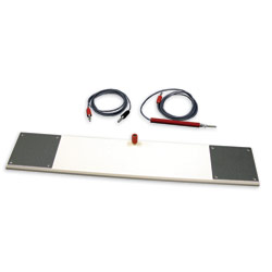 El sujeto debe mantener un punzón metálico dentro de los agujeros sin tocar los lados. Con este instrumento pueden estudiarse los efectos de la fatiga, ejercicio, tabaco, alcohol, y drogas. Incluye un contador para indicar el número de veces que se toca el borde y el tiempo que se mantiene tocando. |