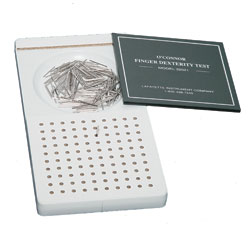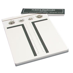 Este test se basa en la destreza digital necesaria para colocar 3 pivotes por cada agujero. Es ideal para valorar la capacidad de manipulación rápida de pequeños objetos. Compuesto por un tablero y 300 pivotes. |