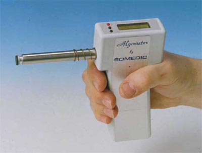 Mide de forma fácil umbrales de presión y tolerancia. Es ideal para evaluar fibromialgias. Resolución muy exacta para identificar pequeños pero significativos cambios clínicos en sensibilidad a la presión. - Registra hasta 40 tests. - Diseño ergonómico. - Dos puntas de presión ( 0,5 cm2 y 1 cm2 ). - Incluye accesorio para medir la fuerza del dedo. Incorpora consola digital a la que se pueden añadir accesorios para la medición de fuerza y movimiento de articulaciones. Posibilidad de software para transmisión automática de datos a ordenador para registro, análisis e informes. |