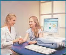 - Permite medidas directas. - No invasivo - Medidas en niños a partir de 5 años, jóvenes y adultos. - Transmisión de datos a ordenador para análisis. - Funciona con baterías o conexión a la red. - Resultados en menos de 60 segundos. El equipo dispone de un transductor de infrarrojos que se aplica en el biceps del brazo dominante aplicando longitudes de onda específicas que son recogidas por la masa magra. La absorción de luz que mide el equipo permite determinar: - Porcentaje total de grasa. - Masa total de grasa (libras o Kgs). - Grasa esencial - Grasa reserva. - Exceso de grasa - Masa magra - Ritmo metabólico basal - Agua total - Índice de masa corporal. Existe un modelo que incluye a las medidas anteriores Pulso y Presión Sanguínea. |