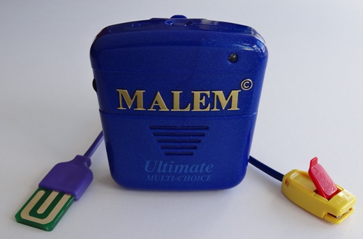 Mide la estabilidad de los brazos de un sujeto. Sobre el panel del aparato hay 3 ranuras de diferentes formas y amplitud. El sujeto con la ayuda de un punzón o estilete debe seguir el trazo de dichas ranuras, entrando en funcionamiento un zumbador y un contador de errores cuando el estilete roza los bordes o el fondo de las ranuras, indica el tiempo empleado en la realización de la prueba. |