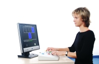 Sistema Reacción Motor / Visual Este equipo que combina un eyetracker y un sistema de evaluación de tiempo de reacción permite evaluar la relación entre respuesta visual y motora. El tiempo que un sujeto necesita para visualizar un objetivo y después golpearlo sirve para evaluar sus competencias deportivas y ayudarnos en la tarea de decisiones en casos de lesiones cerebrales. El sistema nos proporciona de forma inmediata tiempos de respuesta crítica incluyendo tiempo de estímulo, tiempo de fijación y tiempo en golpear el objetivo. Los estímulos se pueden variar o cambiar de forma aleatoria para adaptarnos a la población o tipo de estudio a realizar. |